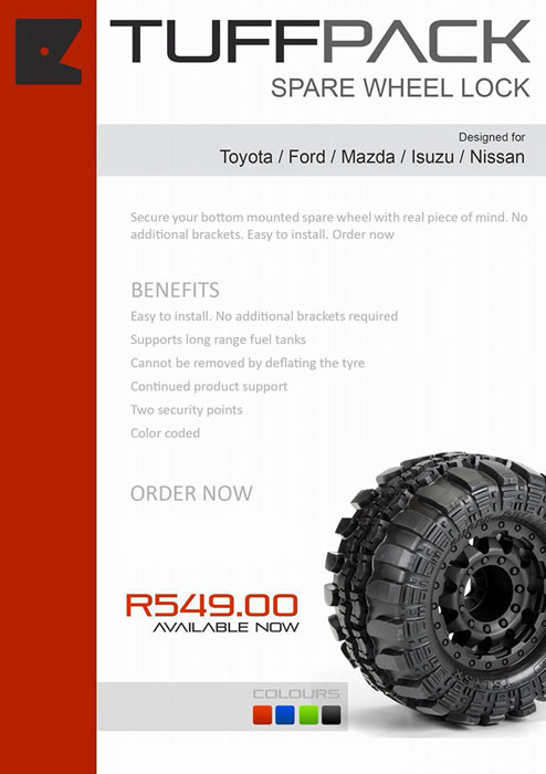 The solution supports any make and model, bakkies or SUV’s. This easy to use solution will put your mind at ease when it comes to loosing that costly bottom mounted spear wheel.